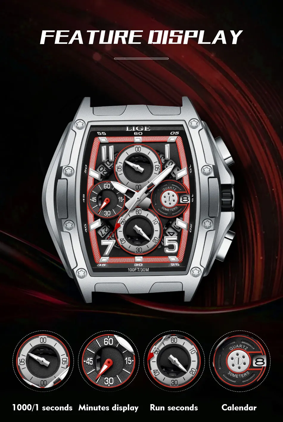 Lige Sports Chronograph Silicone Band Waterproof Quartz Men Watch